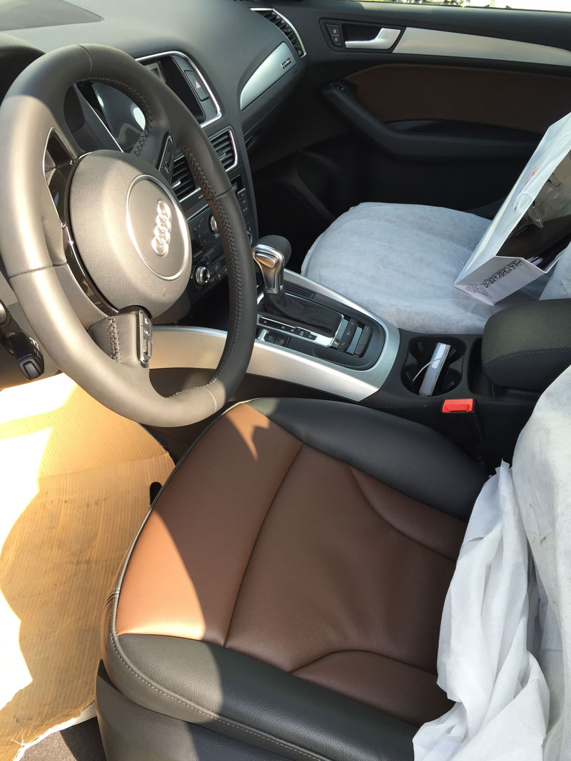这次客户选择的是黑棕双拼,之前我也只看过图片,觉得还是纯色好看,但是看到实物以后真是大改观,皮面很有质感,拼色也显得车子运动感更强,还是不错的!