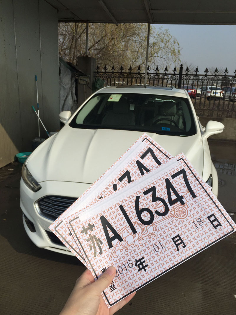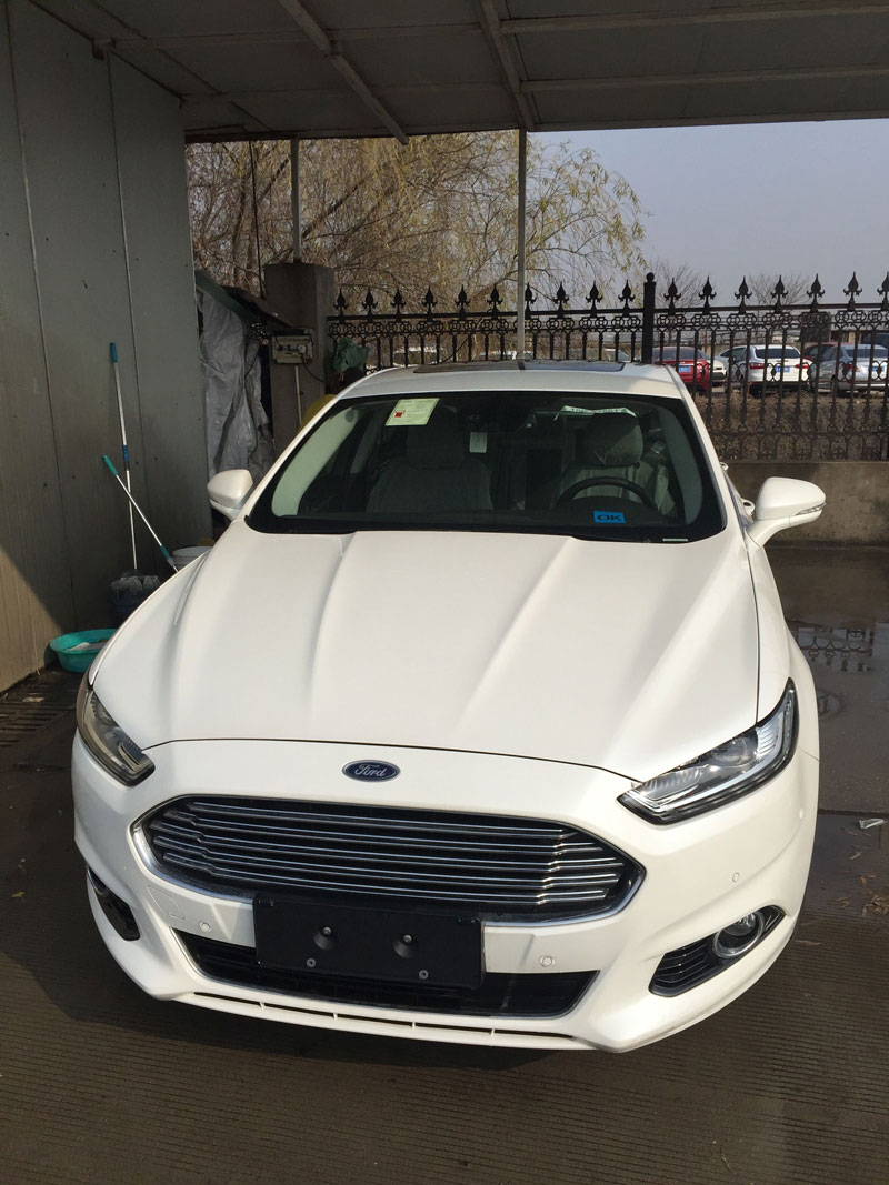 客户远道而来提取爱车蒙迪欧顶配!珍珠白!临牌临牌!不用说啦!